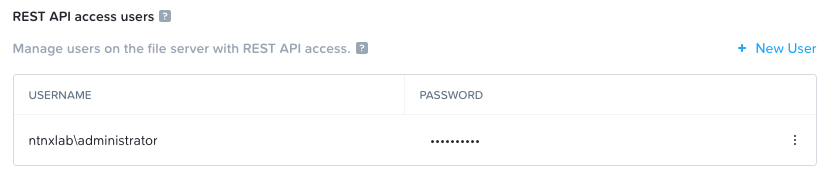 - Username - ntnxlab\administrator (this is the REST API access user)