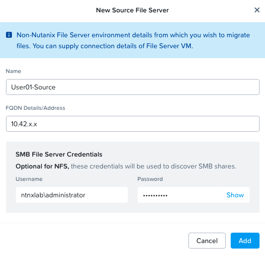 - Username - ntnxlab\administrator